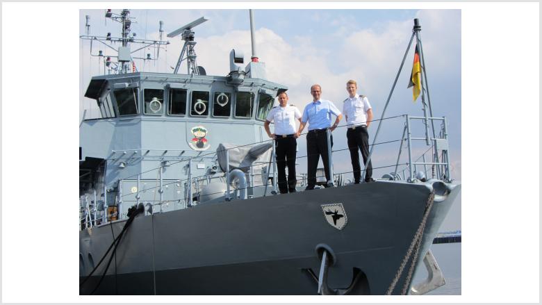 Bild 1: Besuch im Jahr 2013 in Kiel mit dem damaligen  Stv. Kommandanten des 3. Minensuchgeschwaders, Christian Meister, der aus der Region kommt und heute im Bundesministerium der Verteidigung seinen Dienst tut.