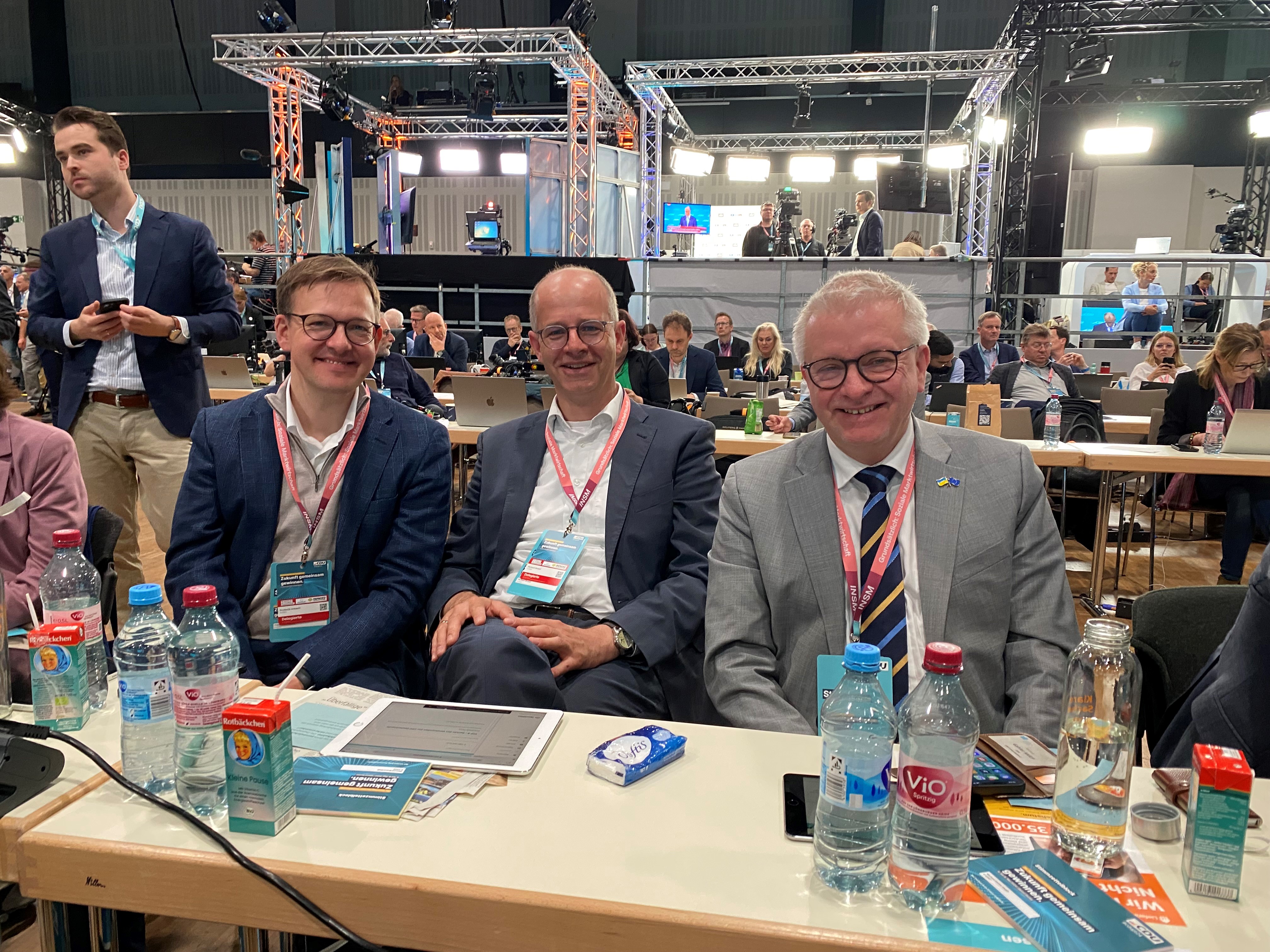 Bildunterschrift: Die beiden Fuldaer Delegierten zum Bundesparteitag MdB Michael Brand (Mitte) und CDU-Kreisvorsitzender Frederik Schmitt (links) mit dem hessischen Europaabgeordneten Michael Gahler, außenpolitischer Sprecher der EVP