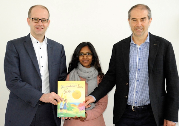 „Es ist ein tolles Kinderbuch geworden! Die fantasievollen Illustrationen entführen in eine ganz eigene Welt und die Geschichte bringt den Leser zum Schmunzeln und regt auch zum Nachdenken an“, resümiert Michael Brand und auch Dr. Geiger ist stolz auf das Ergebnis: „Das Projekt hat den Sprung vom Lokalen auf die Bundesebene geschafft, das freut uns sehr. Ein nächster Schritt im Sinne von Jollydent wären weitere Übersetzungen des Buches in möglichst viele unterschiedliche Sprachen wie Russisch, Türkisch, Arabisch oder Englisch für zweisprachige Kinder.“ Auch Michael Brand zeigte sich angetan von dieser Idee und dankte Wolfram Geiger für „großartiges Engagement“ und Terese George für eine „tolle Leistung, die Gutes geschaffen hat“.